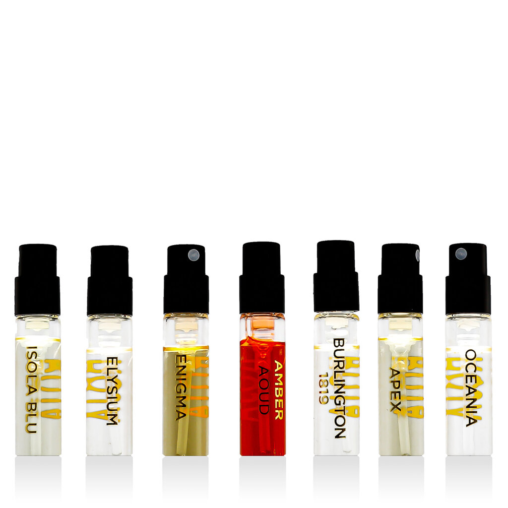 Série | Ensemble de miniatures, Amber Aoud, Oceania, Isola Blu, Burlington 1819, Elysium pour Homme, Apex Eau de Parfum, Enigma pour Homme Eau De Parfum |